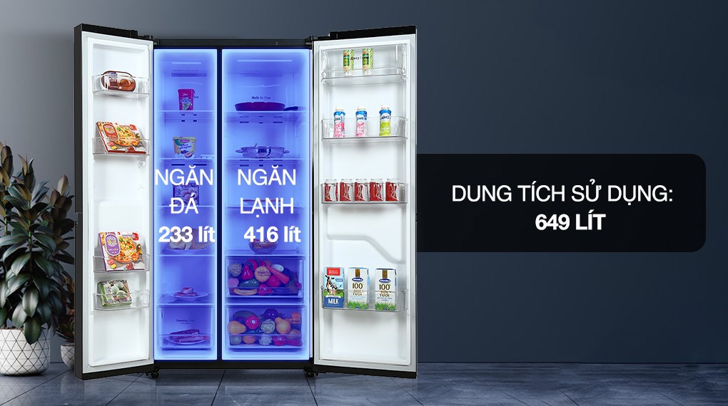 - Dung tích 649 lít phù hợp cho nhu cầu bảo quản thực phẩm của gia đình từ 5 thành viên trở lên.