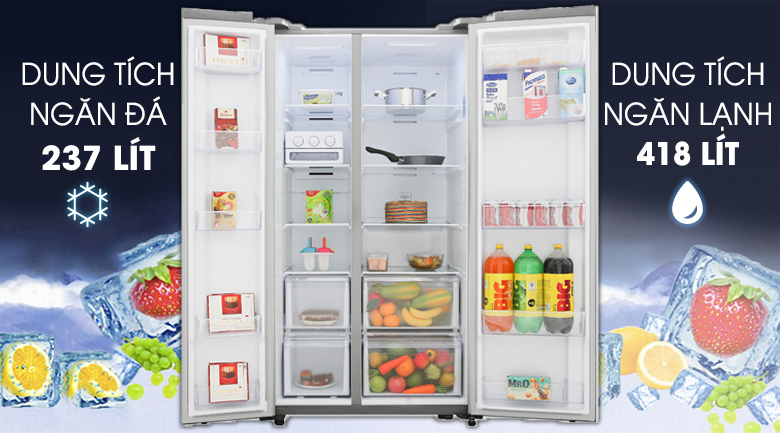Với tổng dung tích sử dụng lên đến 655 lít, chiếc tủ lạnh Samsung Side by Side này là một sự lựa chọn lý tưởng cho gia đình có không gian sống rộng rãi, cùng số thành viên trên 5 người.
